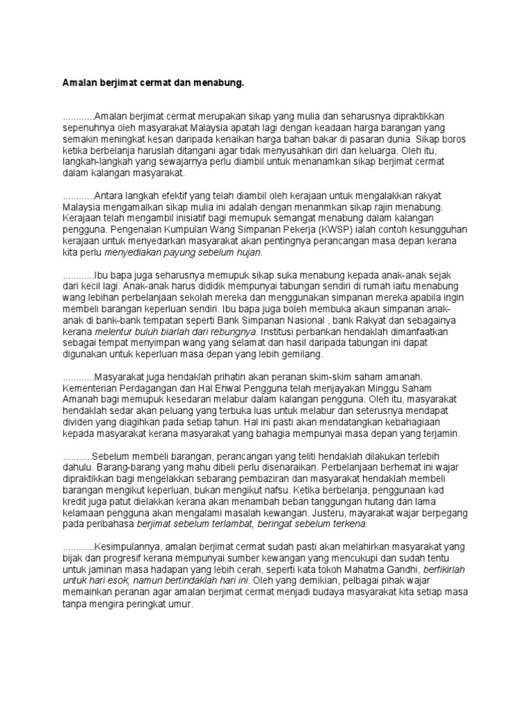 Berjimat Cermat Amalan Mulia Karangan Spm