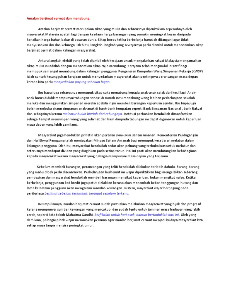 Peribahasa Berjimat Cermat Dan Menabung. Batu loncatan sesuatu yang dijadikan alat untuk. Karangan peribahasa beringat sebelum kena dan berjimat sebelum habis it life.